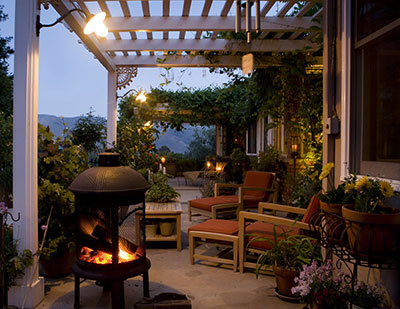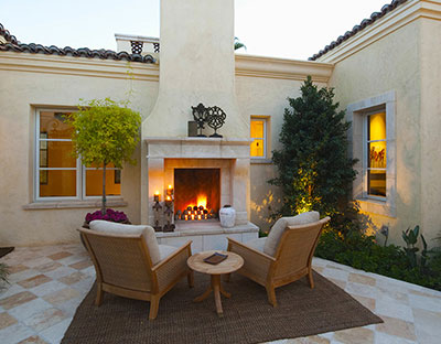Ktheje oborrin në një “dhomë të jashtme”. Ky ambient është shndërruar në një oborr të ngrohtë me shtimin e një dyshemeje me gurë të punuar, një qilimi të jashtëm dhe një oxhaku të madh që të tërheq drejt kësaj hapësire unike. Shto mobilje që përputhen, dekor dhe bimë të larta për të theksuar pikën qendrore.